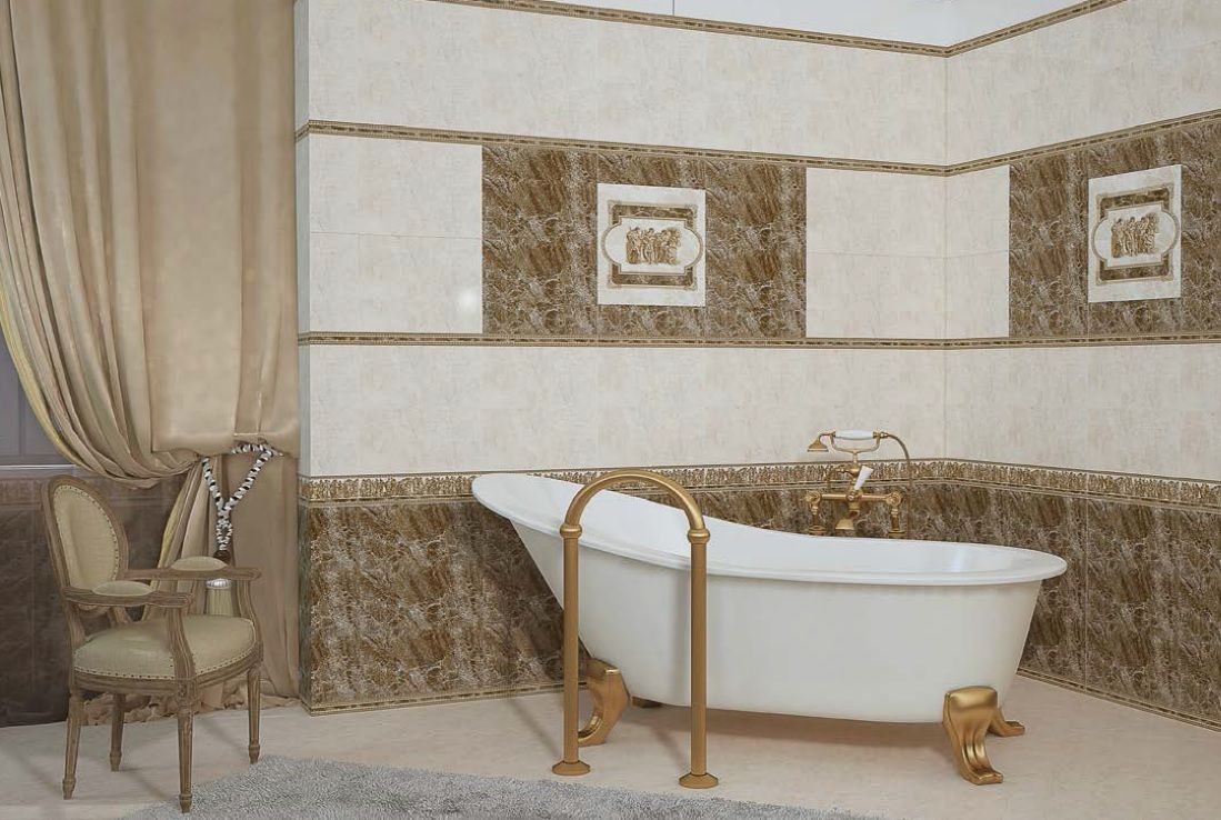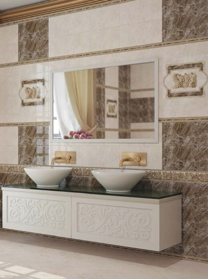 Плитка 50x5 Антика бордюр многоцветный глянцевая бежевый Belleza