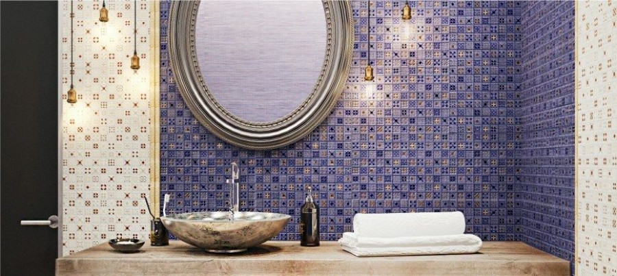 Плитка 40x28 Калипсо настенная с антибактериальным покрытием 2 синий матовая Керамин