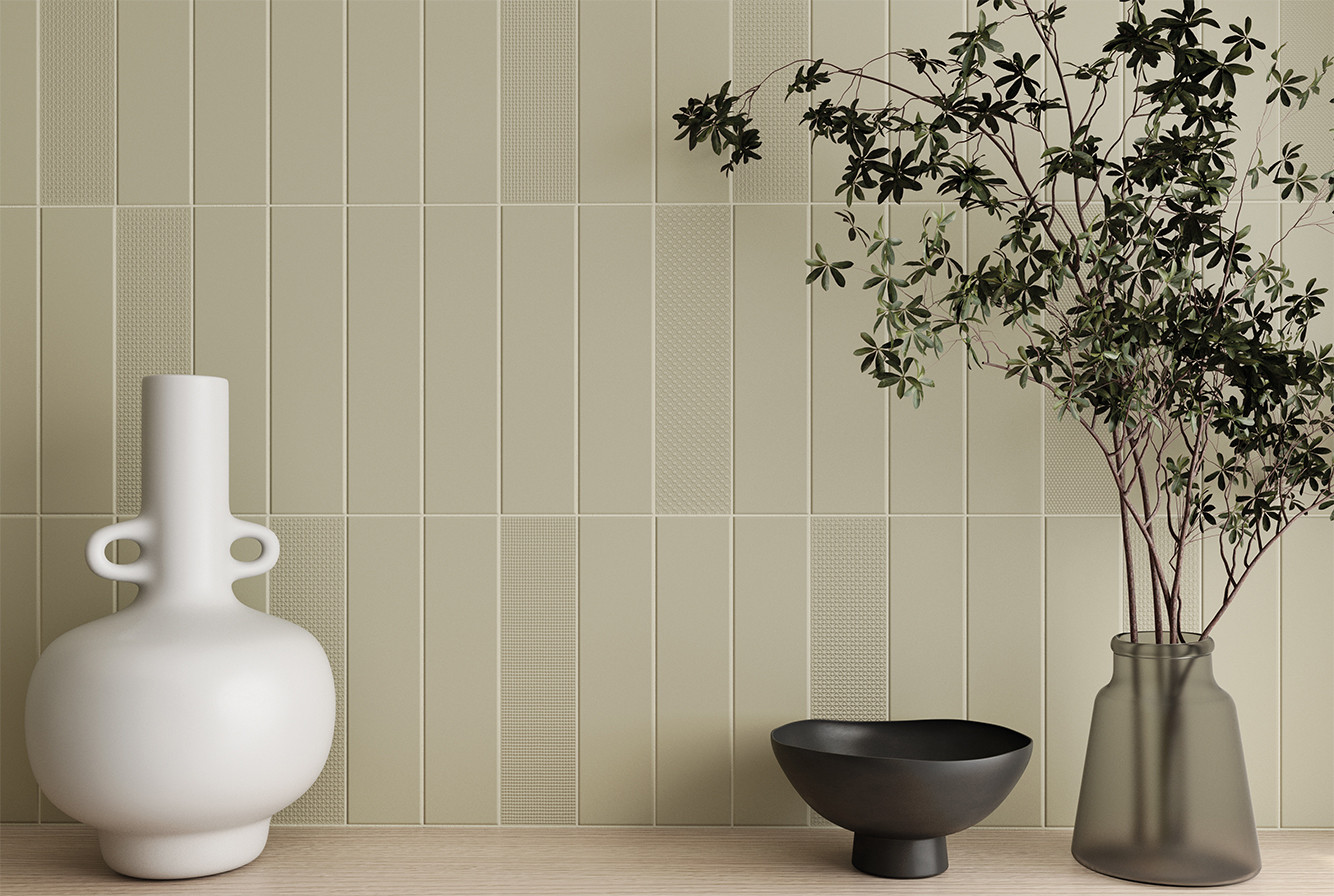 Плитка настенная 25x6.25 Texiture Pattern Mix Sage (9 паттернов) 127137 Wow