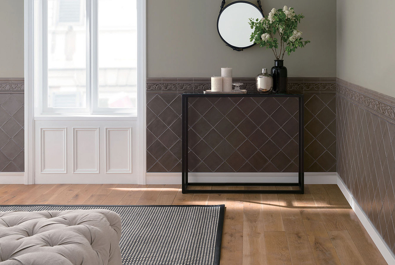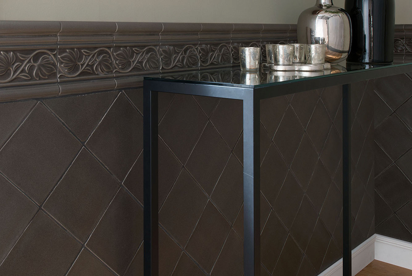Плитка бордюр 15x7.5 Nature Relieve Hojas Marengo ADNT5030 Adex