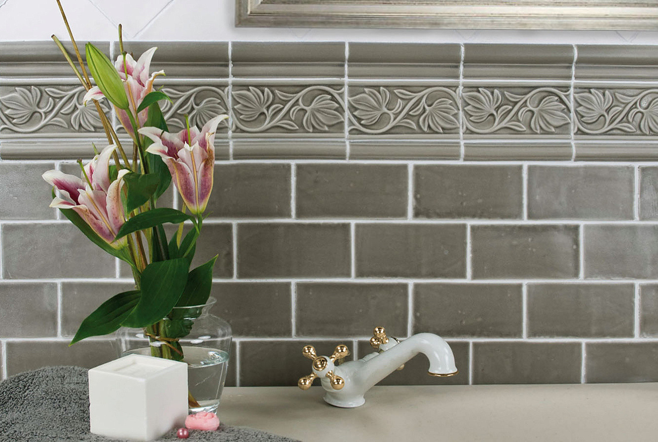 Плитка бордюр 15x7.5 Nature Relieve Hojas Smoke ADNT5031 Adex