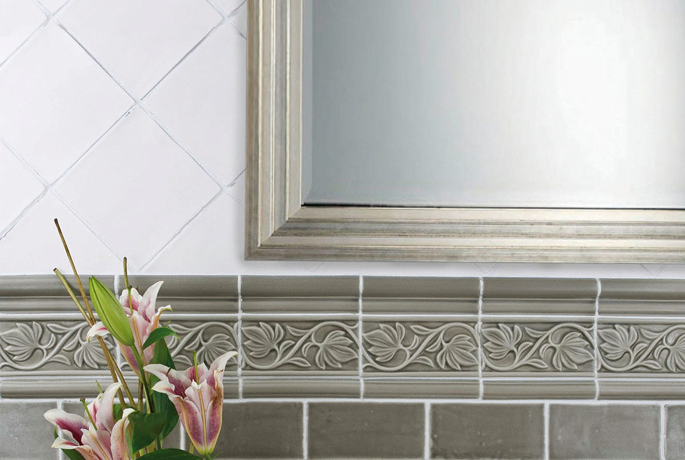 Плитка бордюр 15x7.5 Nature Relieve Hojas Snow ADNT5032 Adex