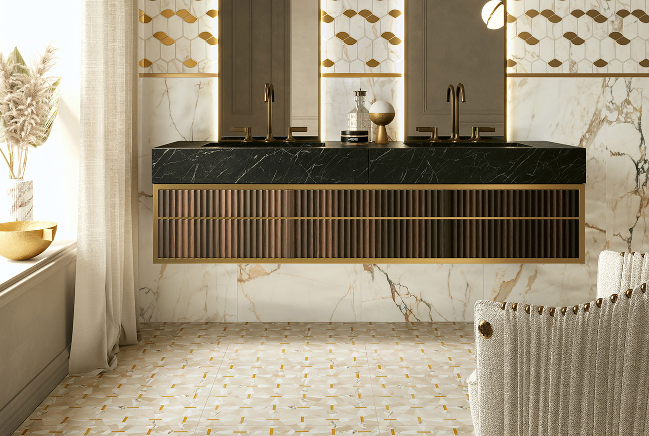 Мозаика 35x26 Luce Oro Decoro Esagona Rame Lusso 6001279 Vallelunga