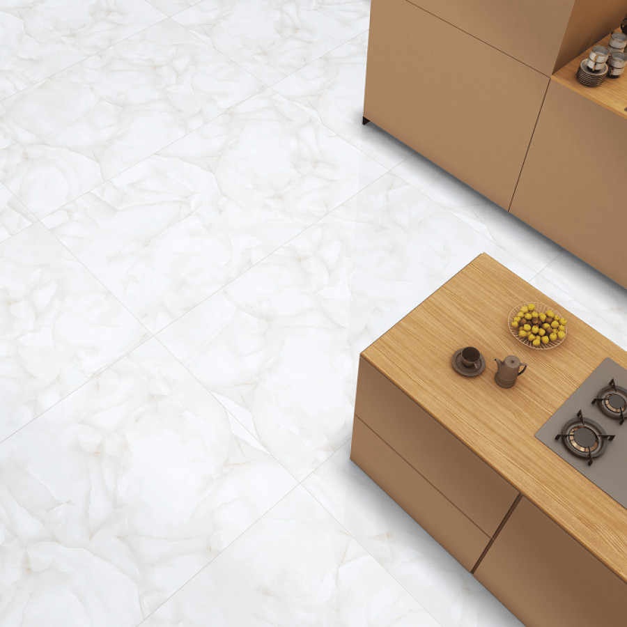 Керамогранит напольная 60x60 9мм Brais White Glossy глянцевая Realistik