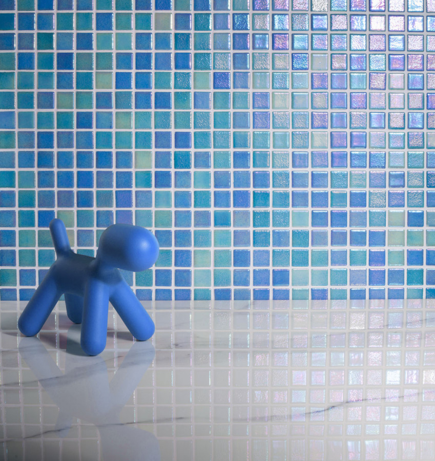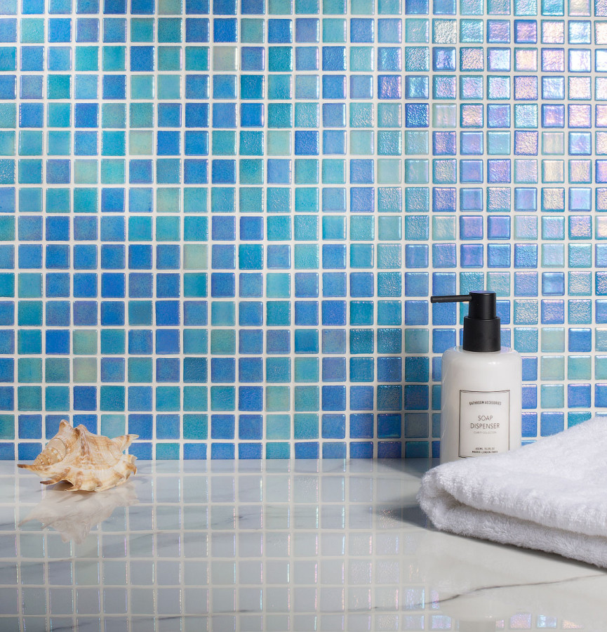 Стеклянная мозаика 32x32 4мм Shell Blue 551/552 перламутр Vidrepur купить в магазине плитки Ураплитка
