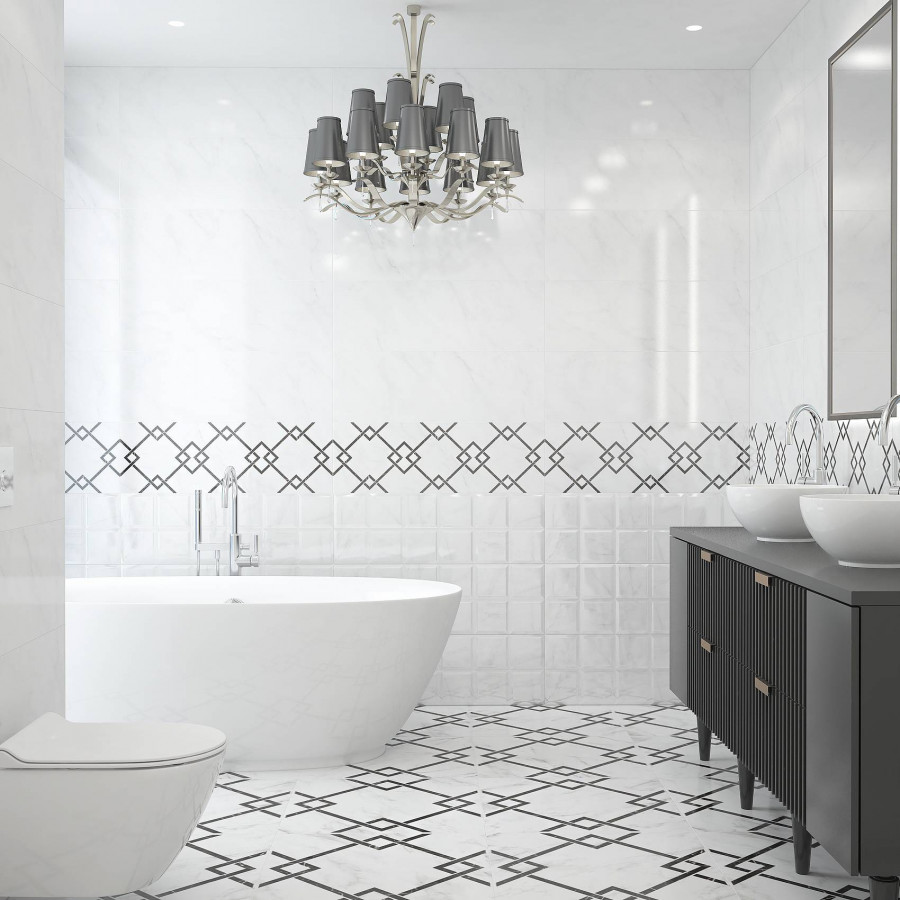 Керамогранит 120x60 Монте белый подполированный глянцевая, полированная Керамин