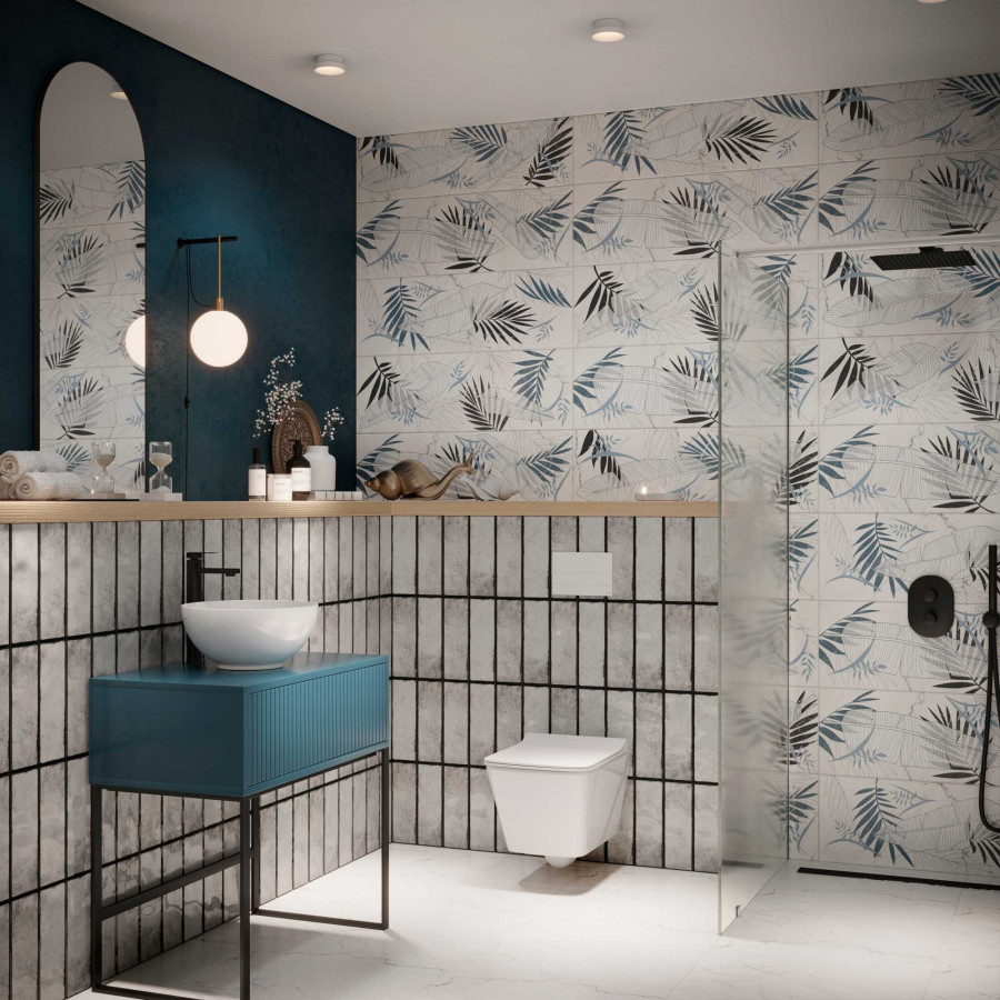 Плитка 90x30 Спарк настенная 1Д серый глянцевая синий светло-серый Керамин