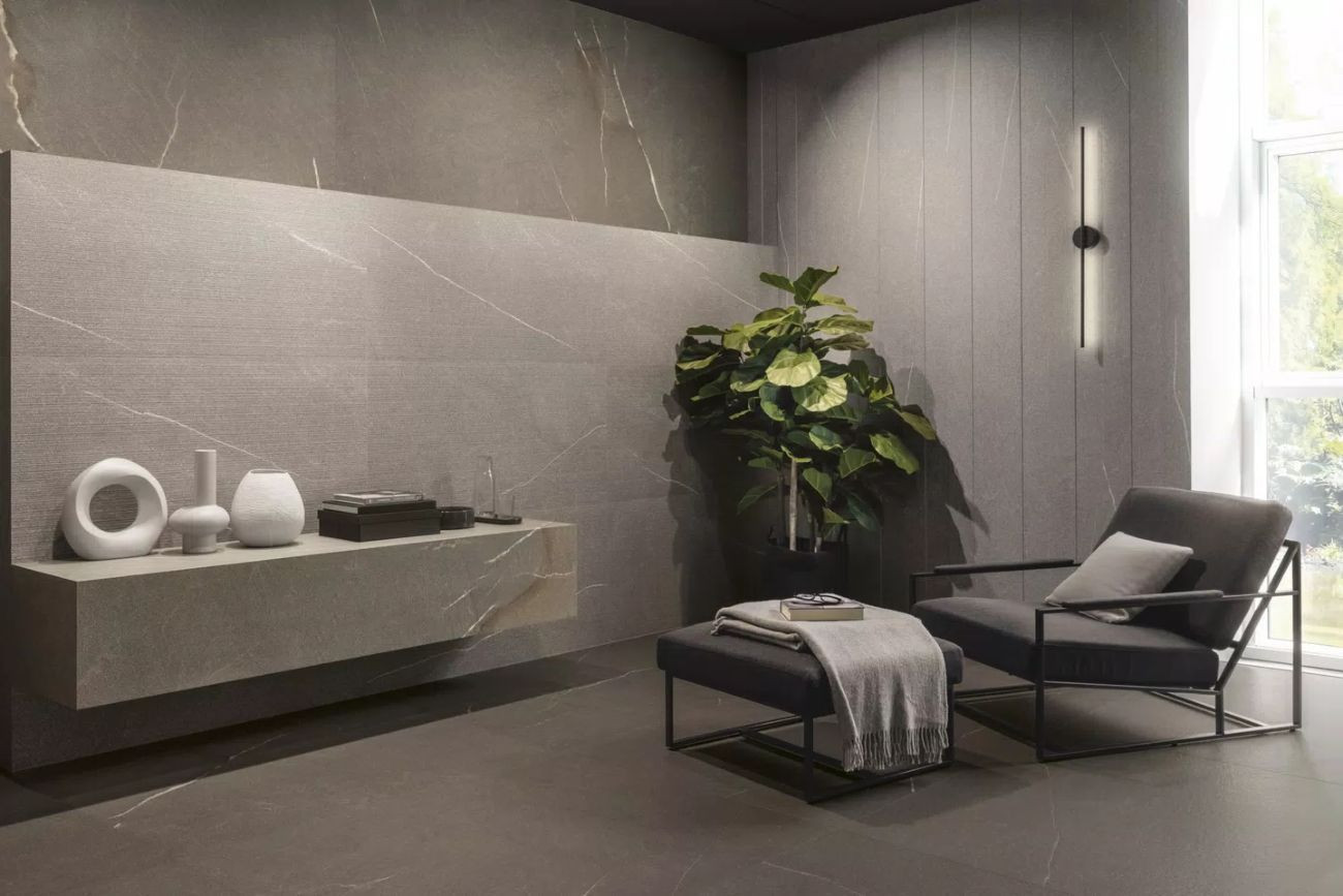 Плитка 180x80 9мм Coretech Brushed Light Nat Ret 778944 матовая серый камень, мрамор Floor Gres