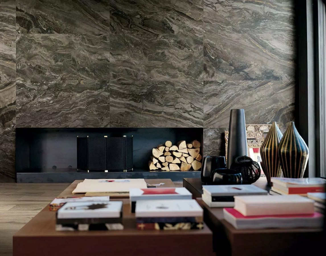 Плитка 240x120 6мм Prexious Charming Amber Mat Ret 756294 матовая темно-серый мрамор Rex Ceramiche