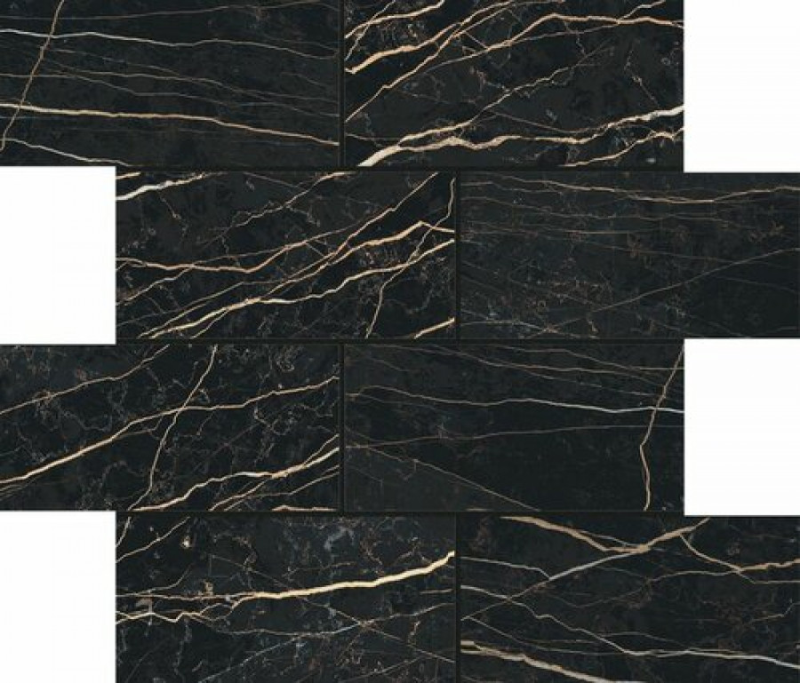 Плитка 30x30 9мм Prexious Rex Thunder Night Mos3X15 Glossy 756315 глянцевая черный мрамор Rex Ceramiche