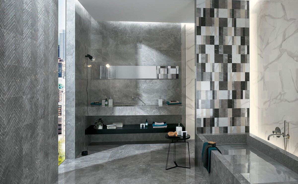Плитка 31x31 9мм Roma Classic Grigio Sup Brillante Mosaico Fny6 серый камень, мрамор Fap Ceramiche