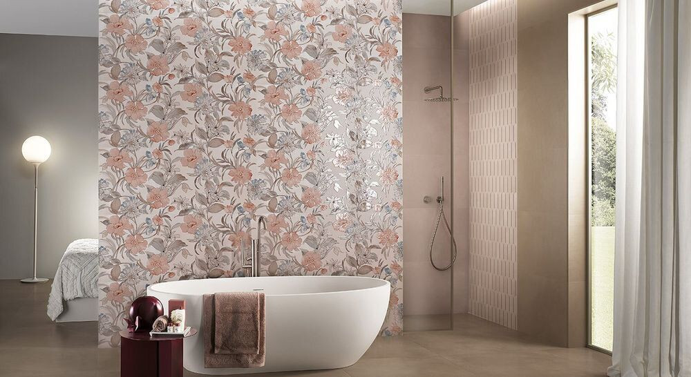 Плитка 120x50 Milano Mood Flower Cipria Fqdd микс розовый под обои, с рисунком Fap Ceramiche