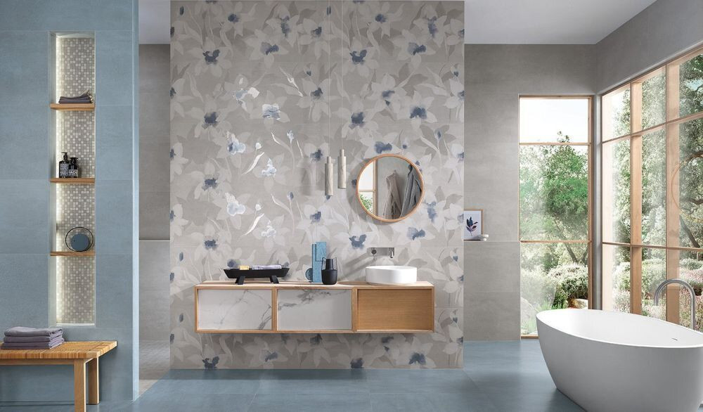 Плитка 120x50 Ylico Flower Concrete Fqwe микс голубой краска, штукатурка, под обои, с рисунком Fap Ceramiche