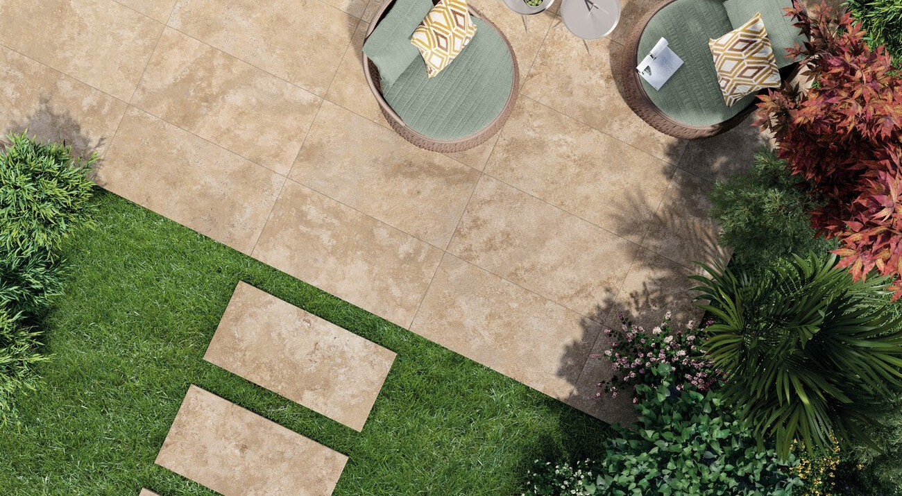 Плитка 120x60 9мм Percorsi Frame Travertino Beige R10 Gj5D бежевый камень Keope Ceramiche