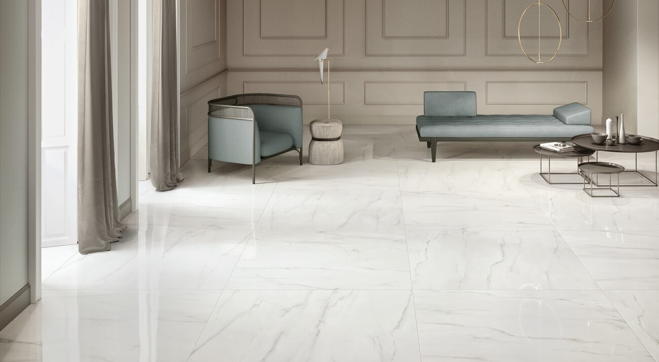 Плитка 120x60 9мм Elements Lux Calacatta Statuarietto Lappato 2A39 глянцевая белый мрамор Keope Ceramiche