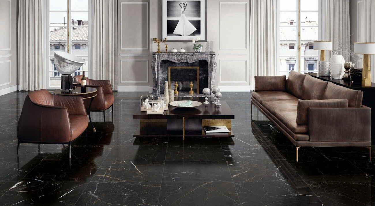 Плитка 120x60 9мм Elements Lux Port Laurent 60X120Nat 25A2 черный мрамор Keope Ceramiche