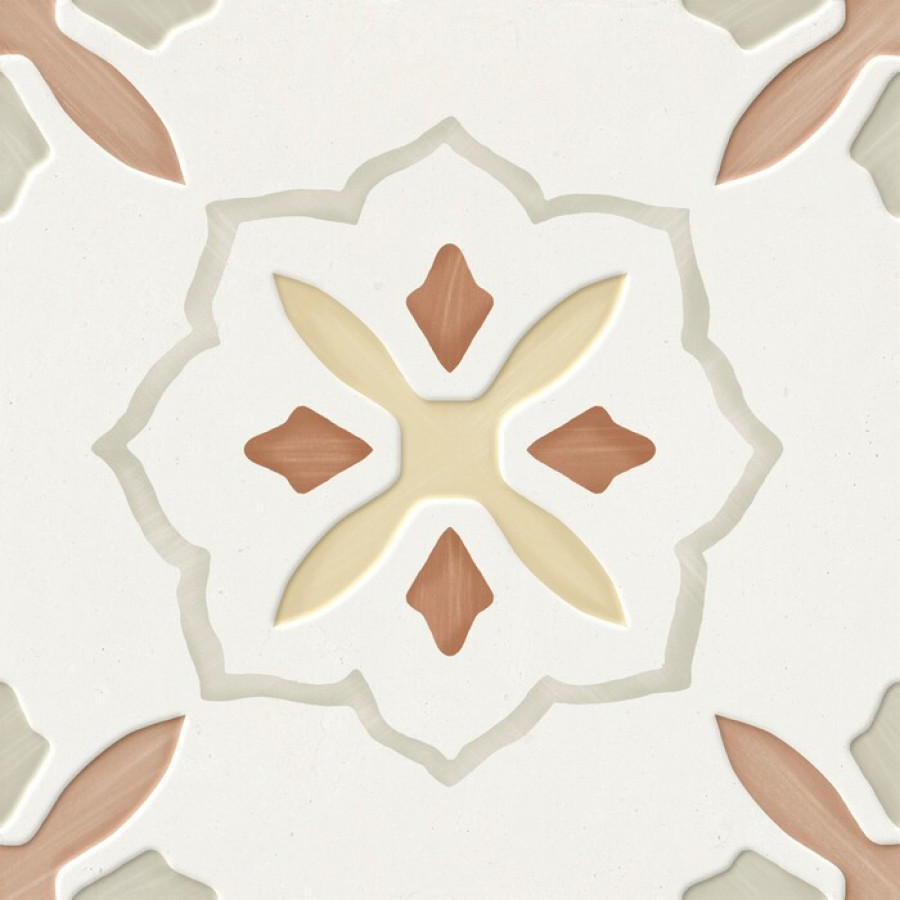 Плитка 22x22 Llevant Clay Petals Lt 40462 белый, коричневый, мультиколор краска, штукатурка, с рисунком Harmony