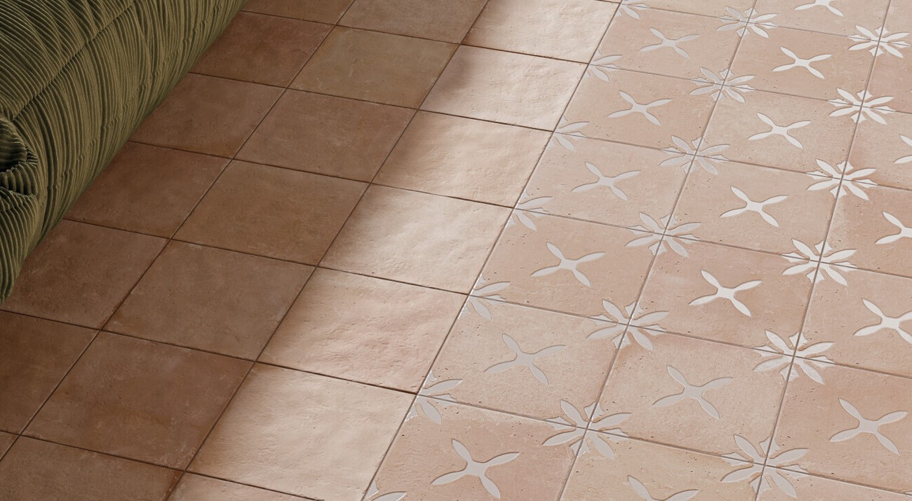 Плитка 22x22 Pangea Clay Flower Lt 40802 коричневый, оранжевый краска, штукатурка, с рисунком Harmony