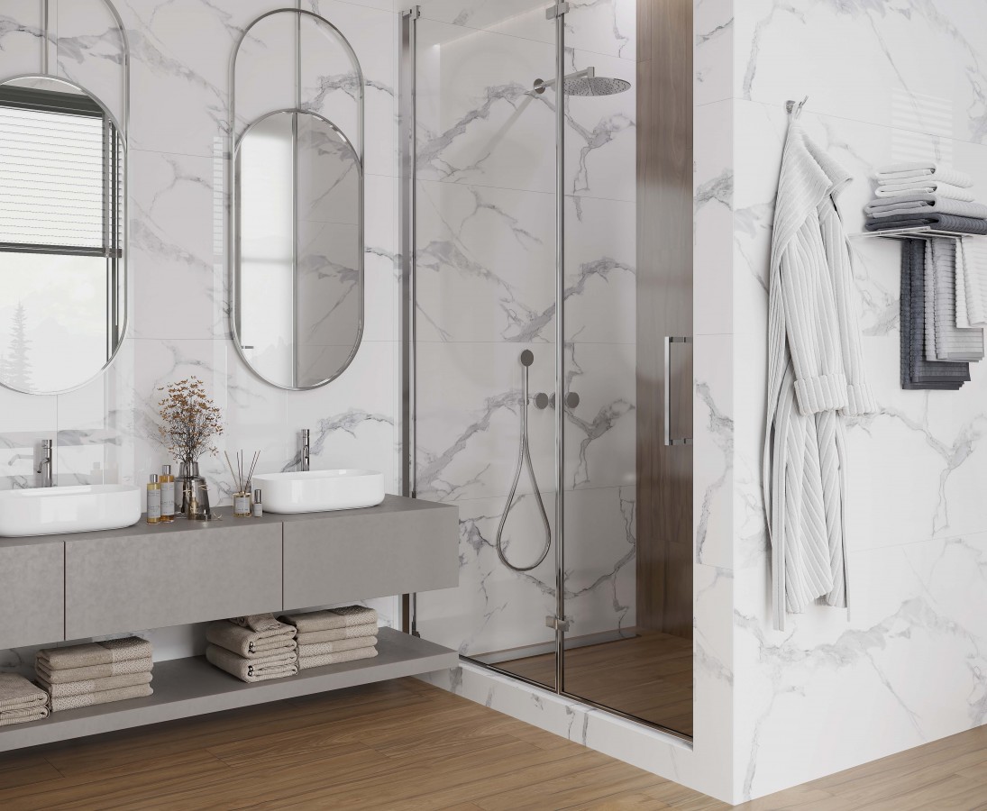 Керамогранит 120x60 Статуарио Краун белый сатиновый глазурованная сатинированная Laparet