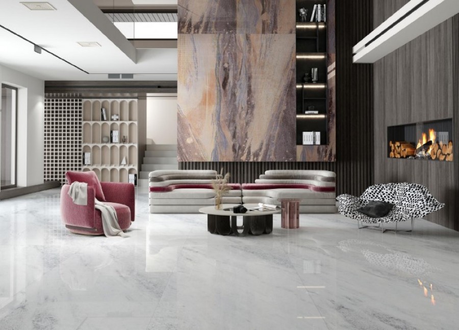 Керамогранит напольная 120x60 10мм Глуми Клауд Кристалл радужный блеск глянцевая Realistik