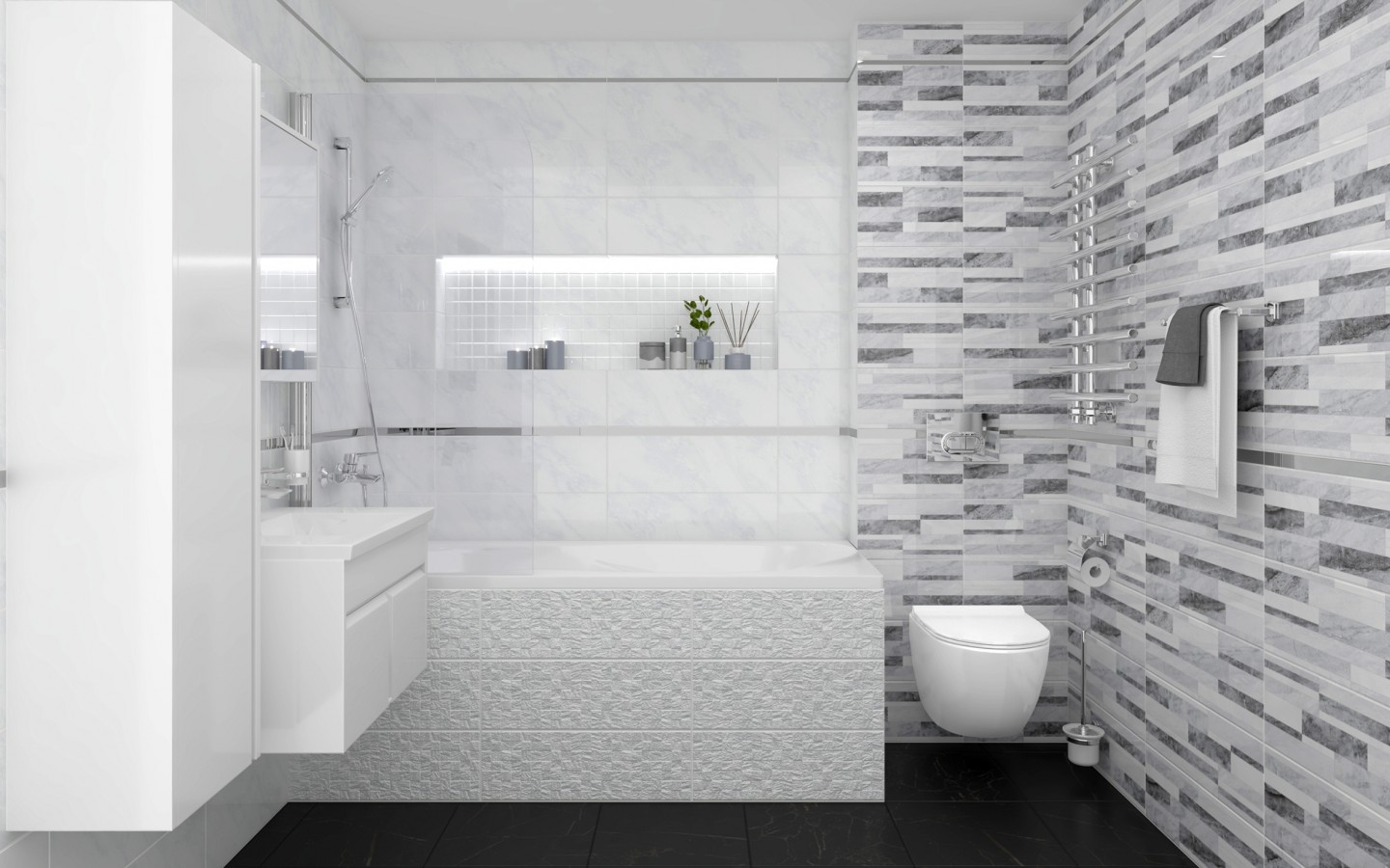 Плитка декофон 60x20 Роял настенная микс серая 60086 глазурованная глянцевая Laparet