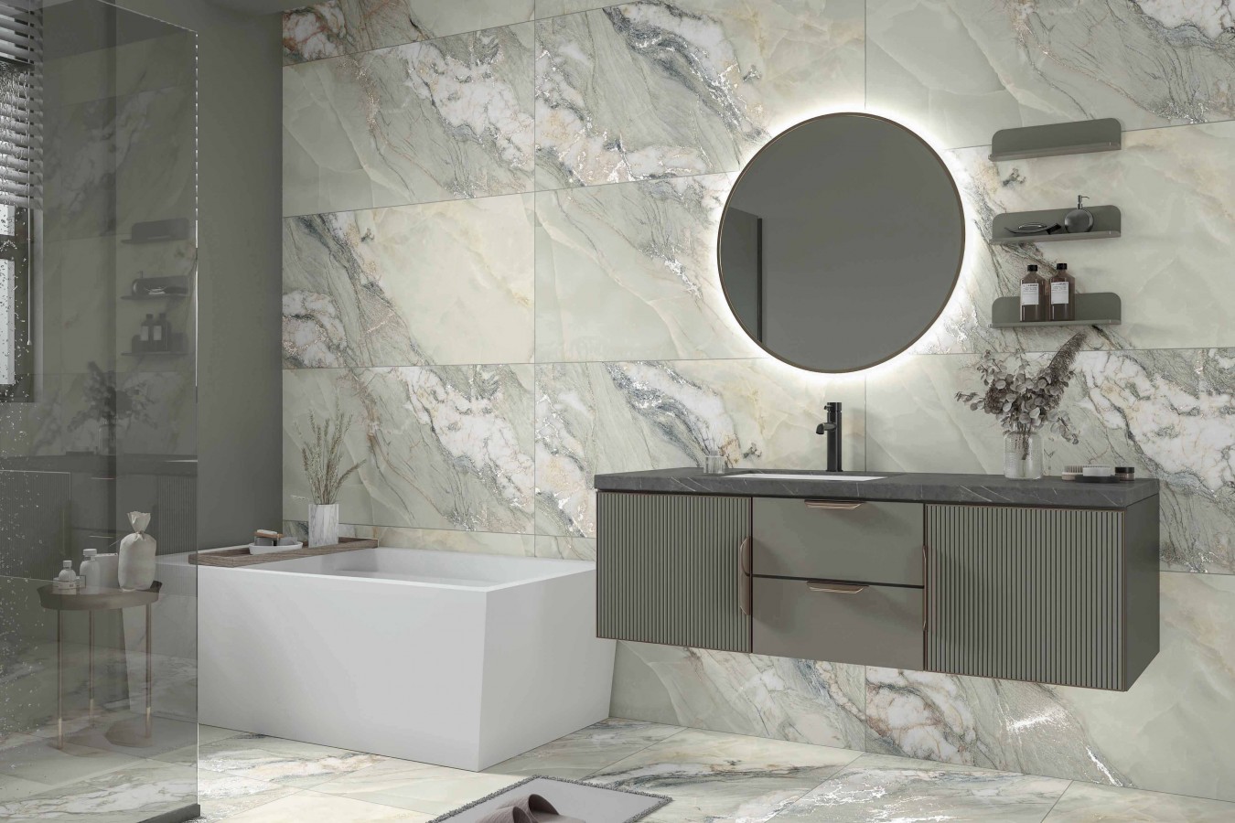 Керамогранит настенная 120x60 9мм Onyx Emerald Grande Vitro матовая Realistik