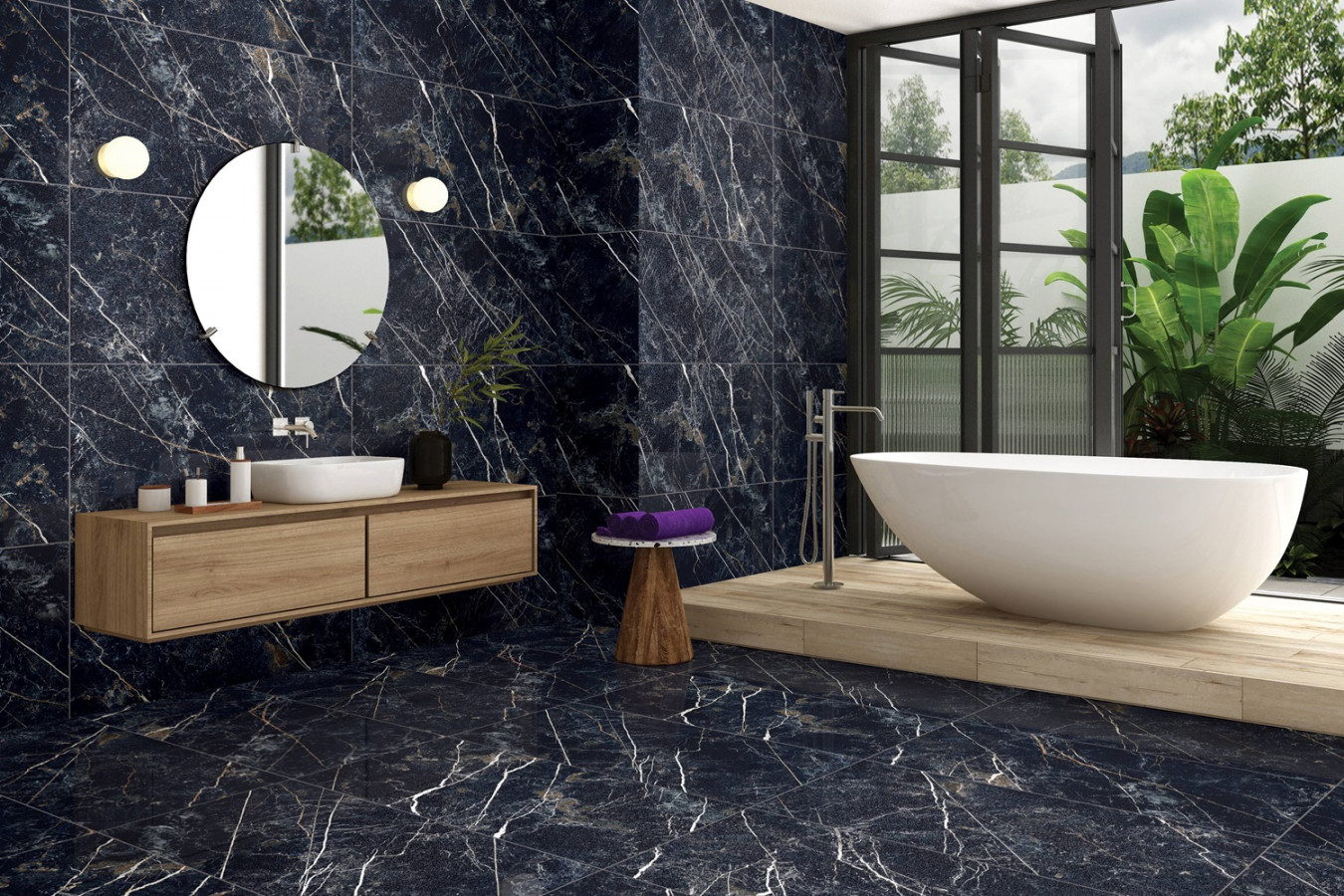 Керамогранит настенная 120x60 8мм Obsidian Black Sparkle Dark матовая Realistik