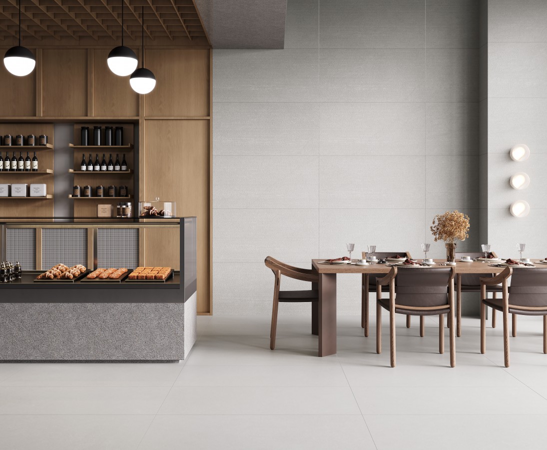 Керамогранит 120x60 Аттол Уайт ПРО Деко Лайнс светло-серый микроструктурный R10/A Бархат КР глазурованная матовая Laparet